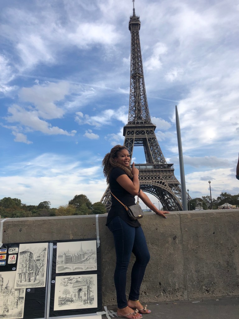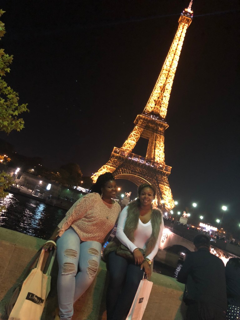 So although this was a solo trip, my fellow traveling cousin told me she had a 24 hour layover in Paris on her way to Iceland (which is on my list too) so I sent her my Airbnb info and boom! Paris got a dose of the dynamic duo for the evening. First stop Musee’ du Louvre of course since she had one night only. The artwork OMG y’all so beautiful, detailed and breathtaking and the ticket to get in only cost €17. The Mona Lisa was the most crowded exhibit and it was hard to get a selfie with her, but y’all know I got one he he. Next we hit the Eiffel Tower for dinner at the dock with a beautiful view. No one told me it flicked at night, so beautiful. I think I took 10 videos that night of it! We did not eat at the restaurant inside of the Eiffel Tower but right across the street where the boat cruise picks up and drops off. Please don’t be mad I can’t remember the name.
