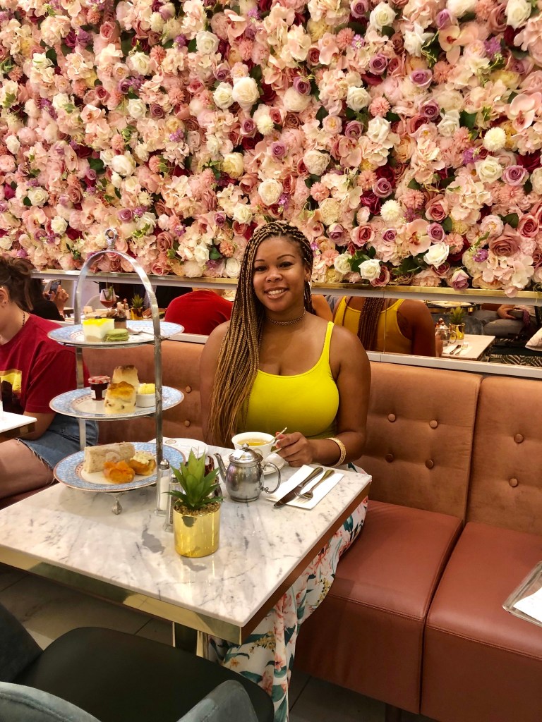 High Tea! I’m already a tea drinker but who doesn’t want to experience High Tea in London. I went to the cutest place called Caffe Concerto at roughly 11am, I chose to get the Prosecco combo which included tea, a cucumber sandwich, salmon sandwich and a chicken sandwich. In addition a assortment of pastries which included macaroons (a personal favorite of mines), cheese cakes, and a chocolate truffle pie. Following my tea and snacks I received a glass of Prosecco to top off my High Tea experience. I could not leave the cafe without taking a picture in front of the beautiful flowered wall. On my last day in London I visited La Cave a Fomage for cheese, meat and wine tasting. Had an awesome time and prices were very reasonable. The three places I mentioned above I would definitely visit again when back in London.