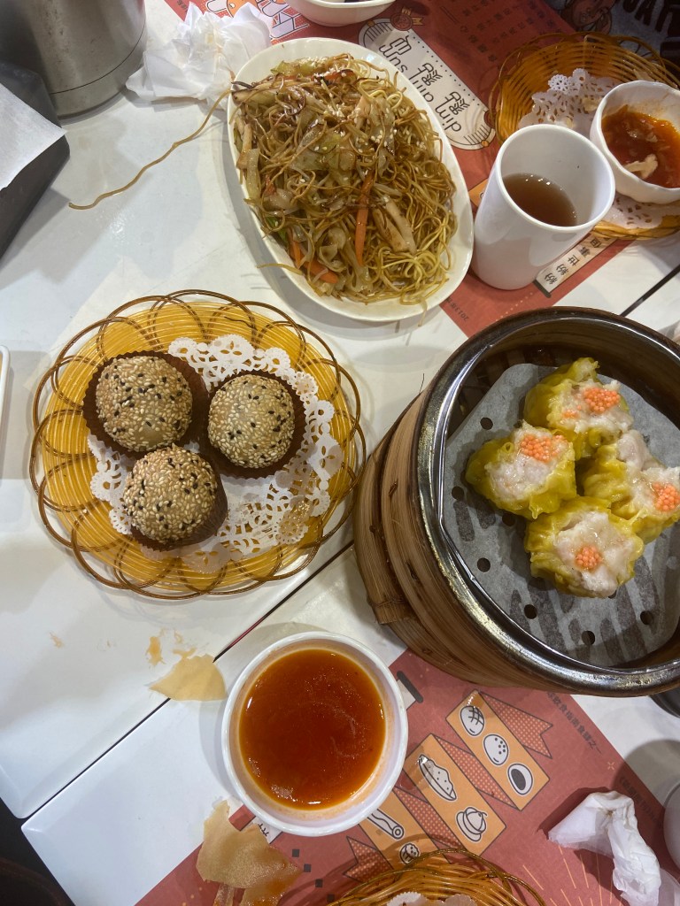 Once we arrived at the Mira Hotel, while freshening up we had to decide where we would hit during our short stay. We started with Chater Garden outside of Central Station, but first we needed to eat. I told Drea we had to have real Dim Dum while in Hong Kong. We found a restaurant recommended to me from a coworker called Dim Dim Sum- Wan Chai! Sooooo, the food was good but shortly after our food arrived to our table I spotted a friendly critter on the wall *yuck*. We had walked 20 minutes to find this restaurant so opted to finish eating but I was super turned off by the bug. We ate pork and shrimp dumplings, noodles, squid and rice balls. Next we took the metro with the locals to Chater Garden which was fun and quick, we didn’t even get lost lol!
